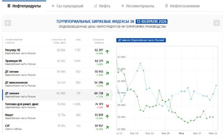 Например, в январе 2026 г. стоимость экспортной альтернативы для бензина составила 55 623 руб. за тонну, а для дизельного топлива – 55 282 руб. за тонну.